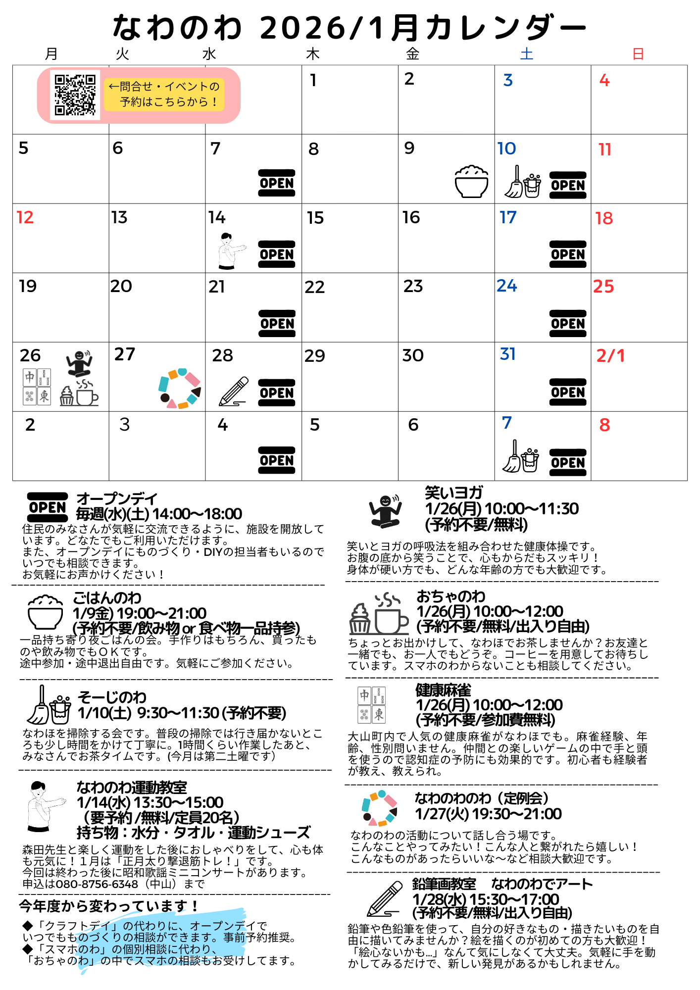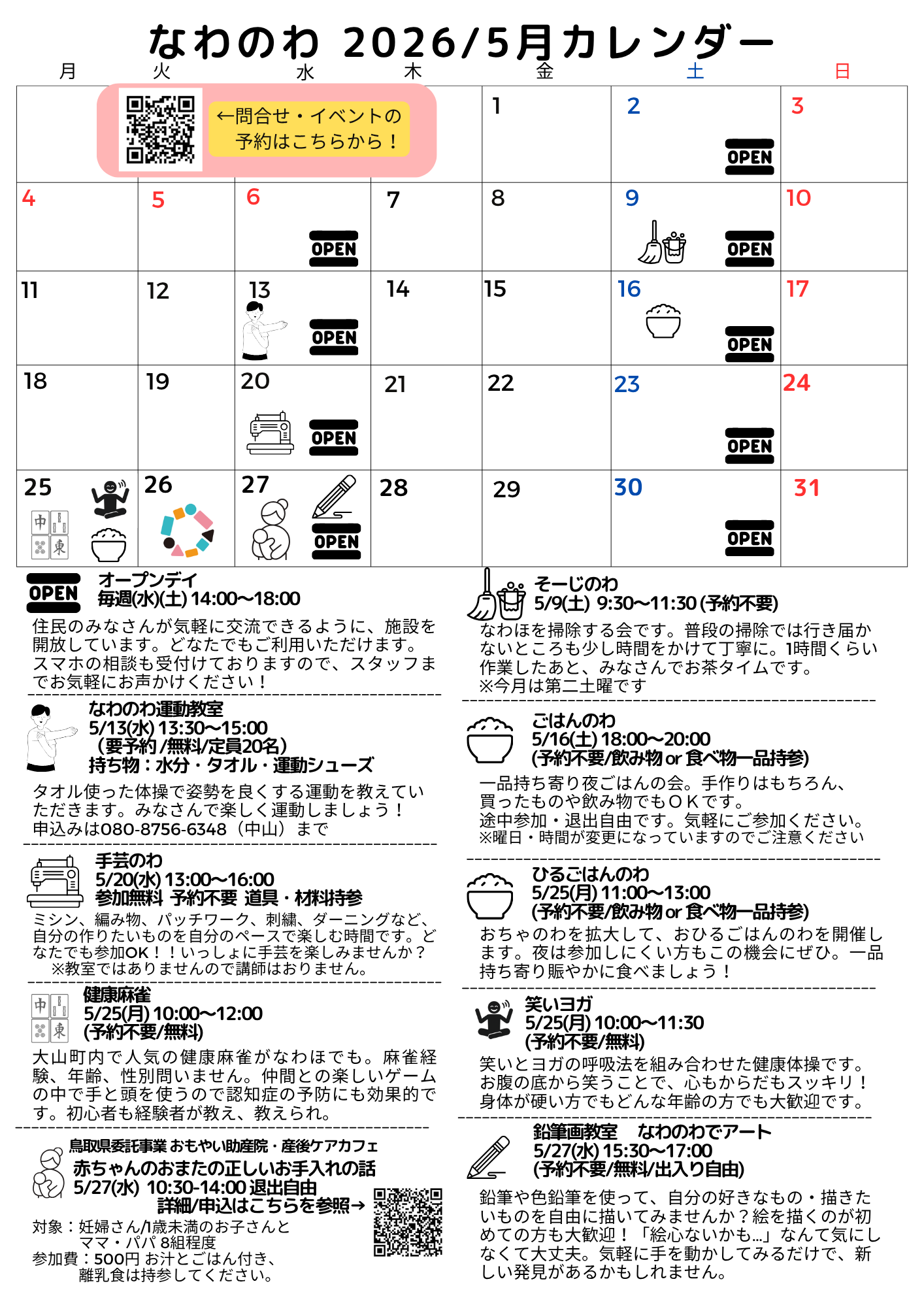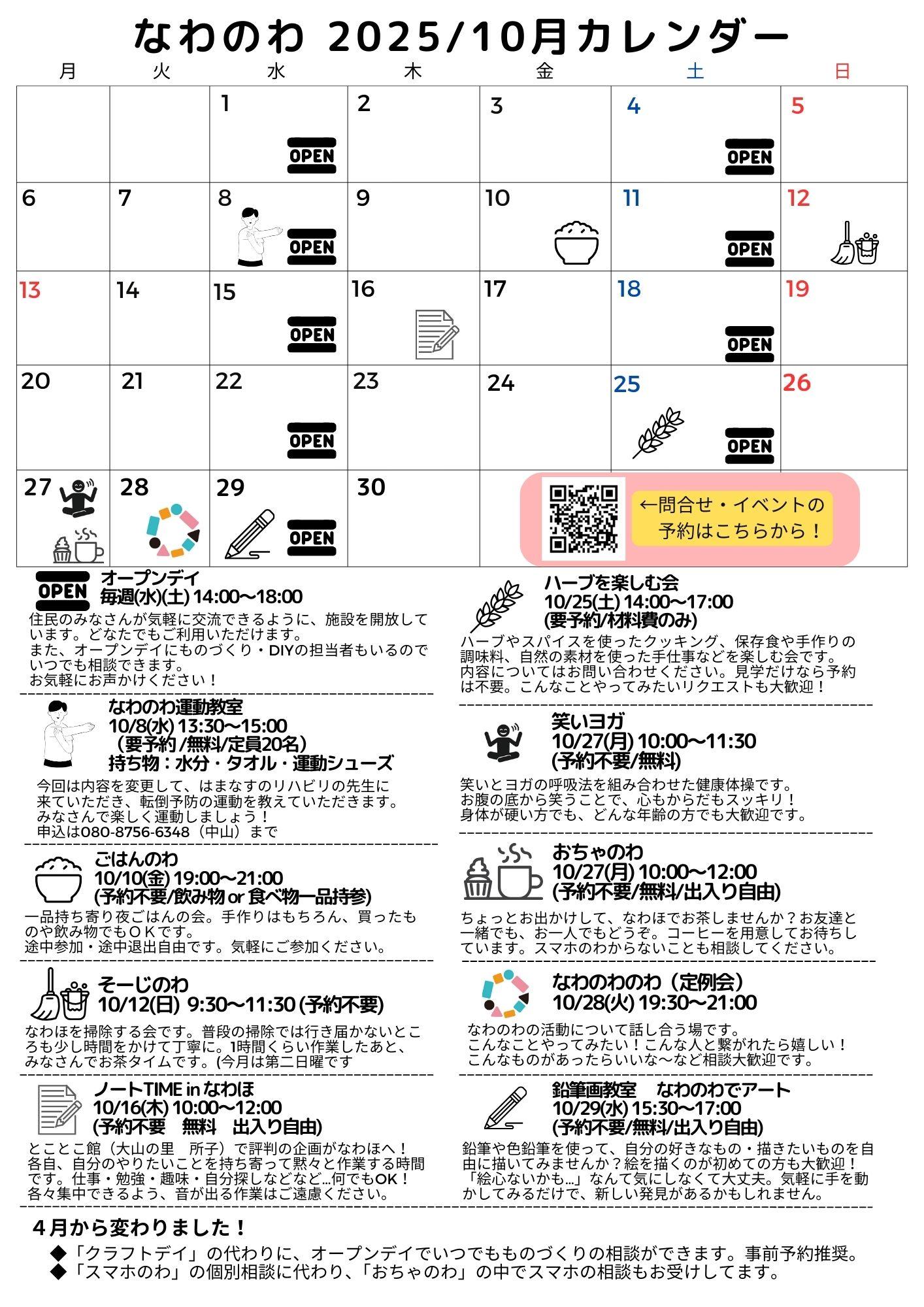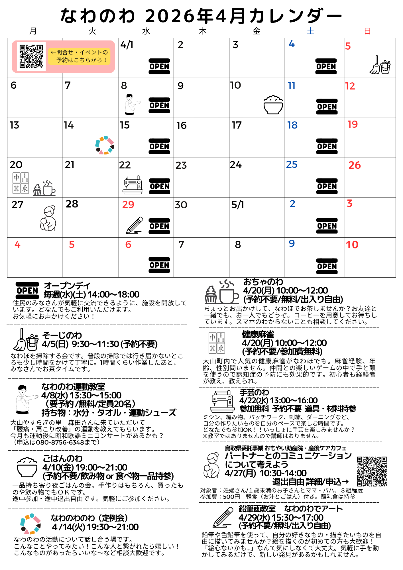 イベント、サークル活動、サロン、子ども会などでなわほを利用できます。